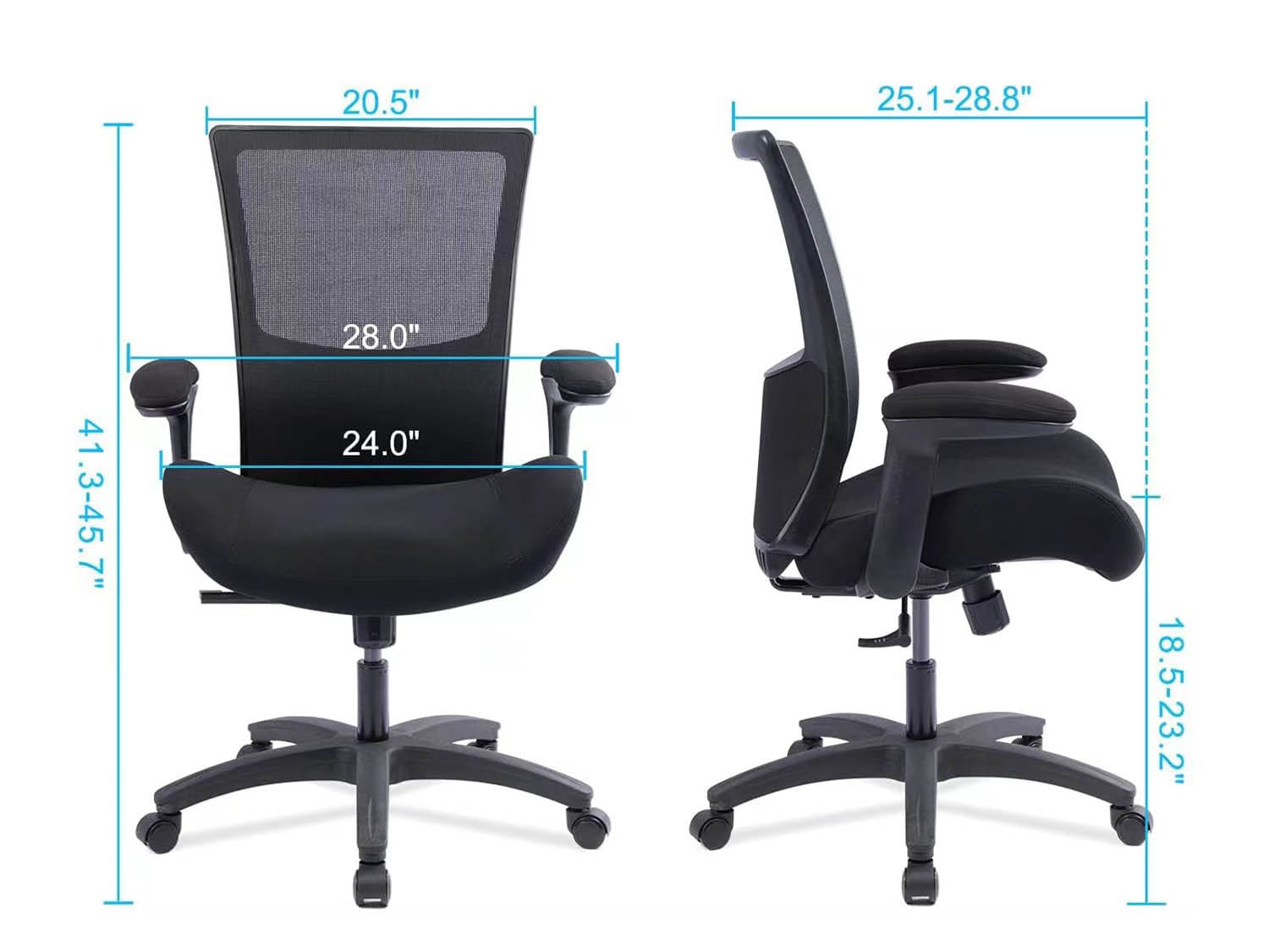 משענת גב מרשת רחבה עם מושב מרופד ארגונומי.
