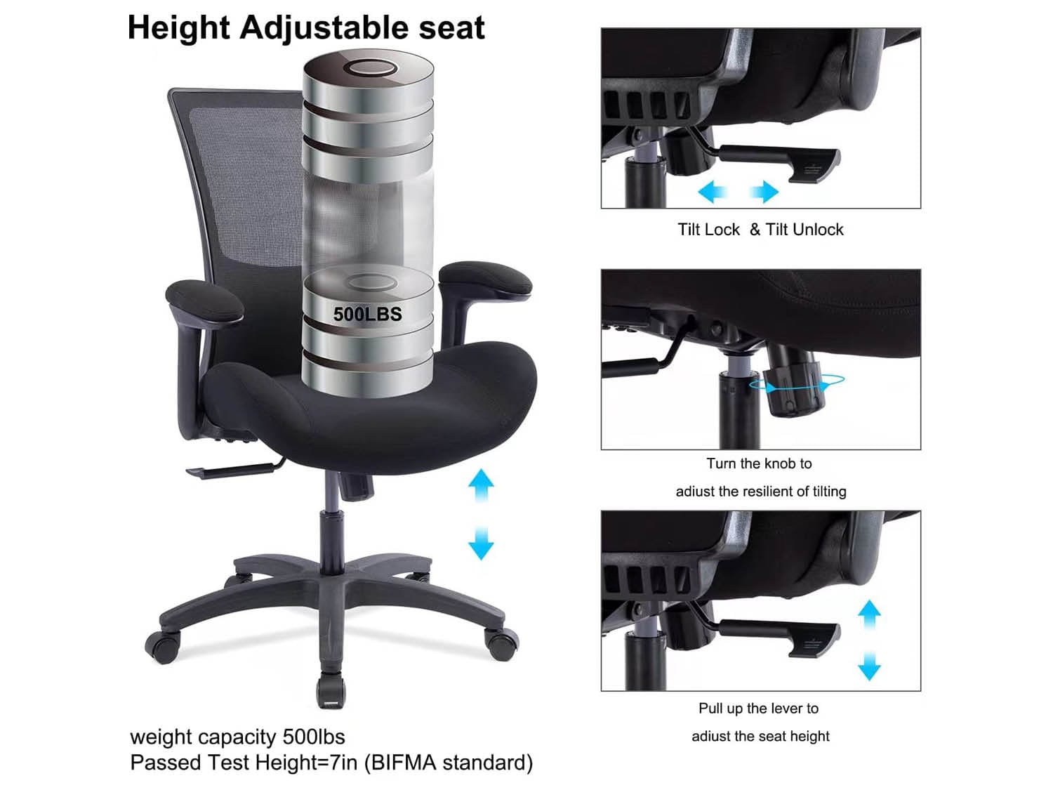 משענת גב מרשת רחבה עם מושב מרופד ארגונומי.